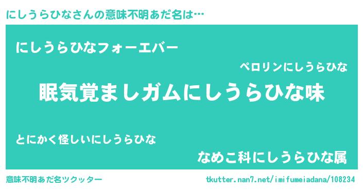 | 欧米人風あだ名 | 『にしうらひな・ステッグマイヤー』 |