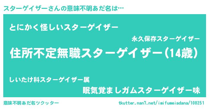 | 欧米人風あだ名 | 『ダレノガレスターゲイザー』 |