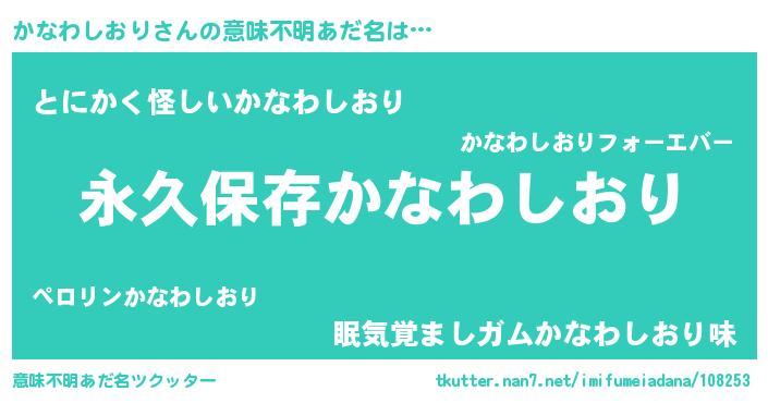 | 胡散臭い通販商品みたいなあだ名 | 『絶対に幸福をもたらす健康食品…その名も「かなわしおり」』 |