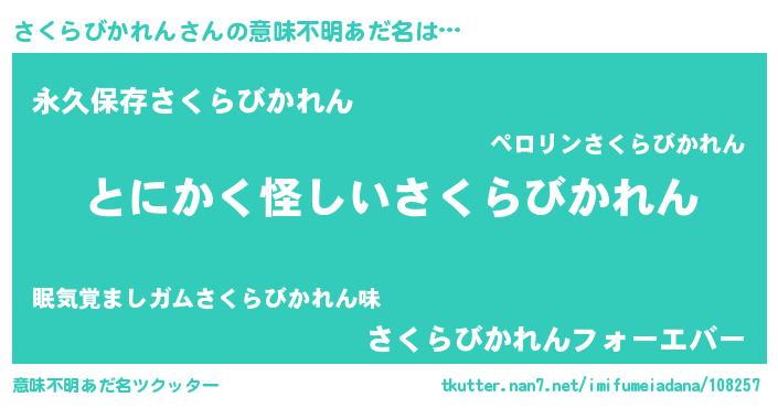 | 男性向けラノベタイトル風あだ名 | 『さくらびかれんの嫁は女の子じゃないと思った?』 |