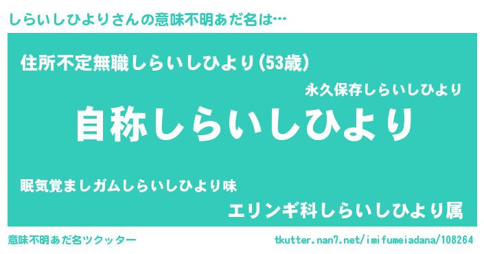 | 男性向けラノベタイトル風あだ名 | 『Re:しらいしひよりから始める異世界生活』 |