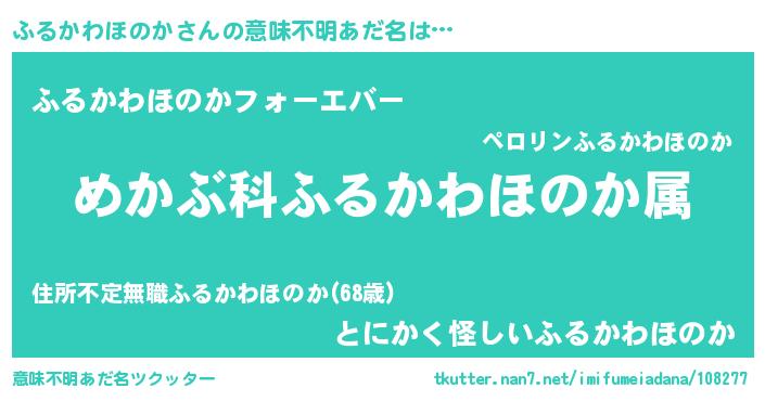 | 欧米人風あだ名 | 『ふるかわほのか・ステッグマイヤー』 |
