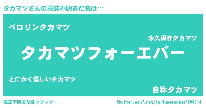| 女子向けラノベタイトル風あだ名 | 『タカマツの雑貨屋さん』『闇のタカマツ』 |