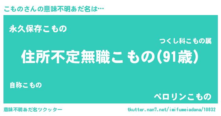 | 男性向けラノベタイトル風あだ名 | 『この素晴らしい世界にこものを!』 |