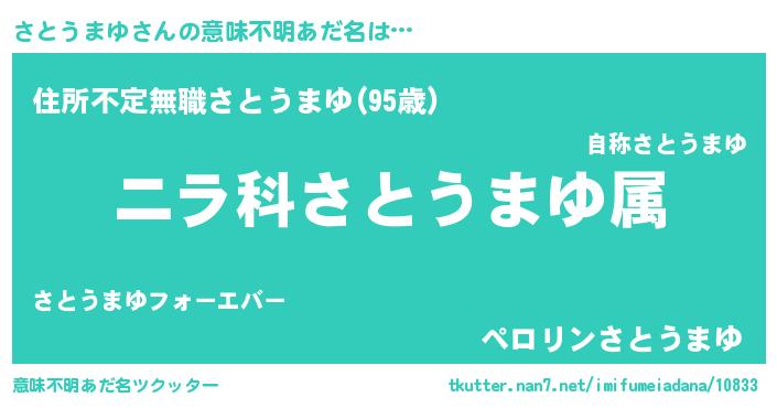 | 女子向けラノベタイトル風あだ名 | 『さとうまゆの玉の輿計画!』 |