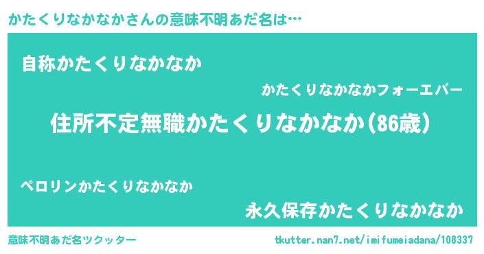 | 男性向けラノベタイトル風あだ名 | 『この素晴らしい世界にかたくりなかなかを!』 |