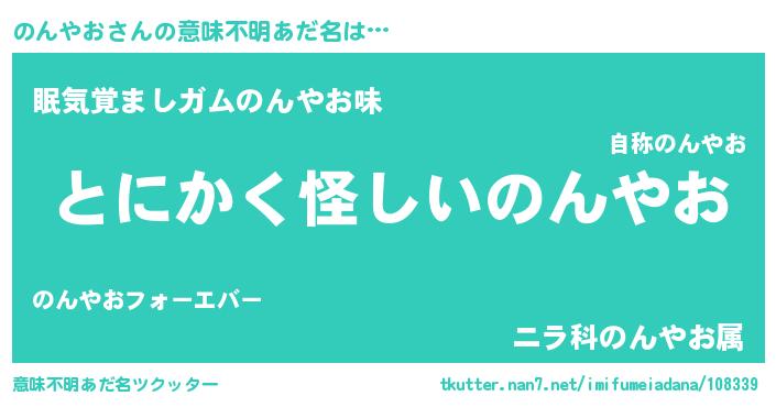 | ヒーロー風カッコイイあだ名 | 『天弓騎士ノン』『正義の使者のんやお』 |