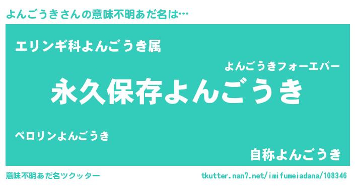 | 男性向けラノベタイトル風あだ名 | 『よんごうきという概念が存在しない退屈な世界 』 |