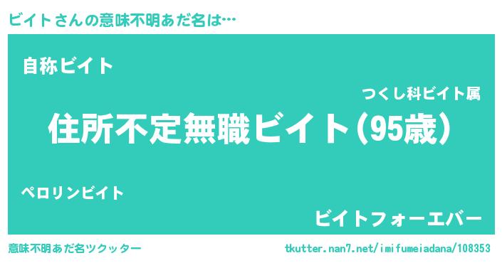 | 男性向けラノベタイトル風あだ名 | 『魔弾の王とビイト』 |