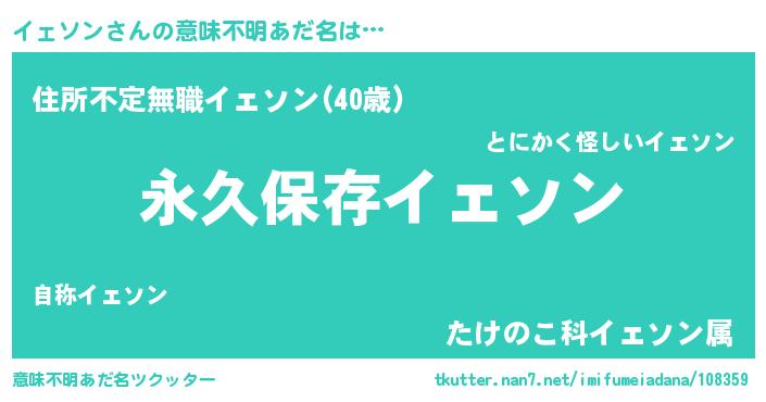 | 男性向けラノベタイトル風あだ名 | 『イェソンという概念が存在しない退屈な世界 』 |