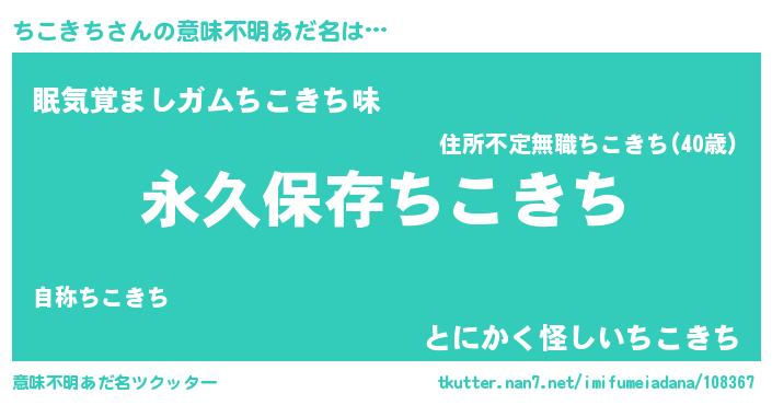 | 胡散臭い通販商品みたいなあだ名 | 『来世でも幸せになれる水素水…その名も「ちこきち」』 |