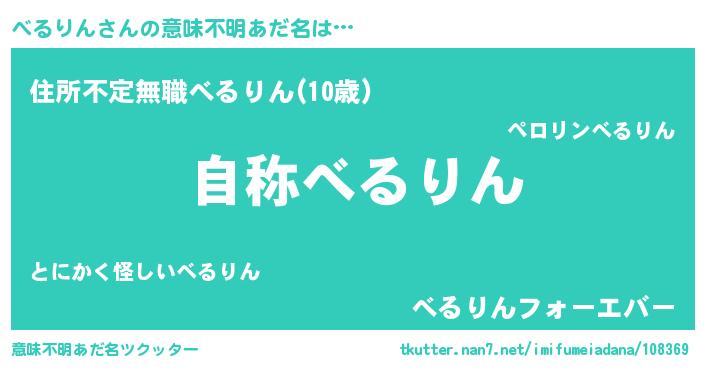 | 男性向けラノベタイトル風あだ名 | 『緋弾のベルリン』『魔弾の王とべるりん』 |