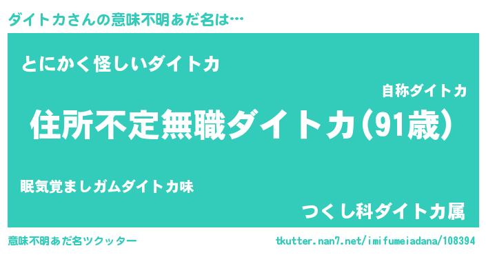 | 男性向けラノベタイトル風あだ名 | 『この素晴らしい世界にダイトカを!』 |