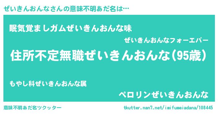 | 自動車の名前っぽいあだ名 | 『ポゼシェ』『ゼンR』『ゼイティマ』 |