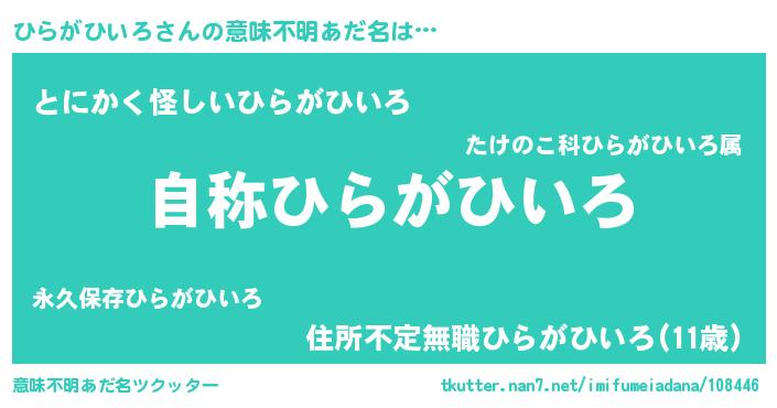 | 男性向けラノベタイトル風あだ名 | 『Re:ひらがひいろから始める異世界生活』 |