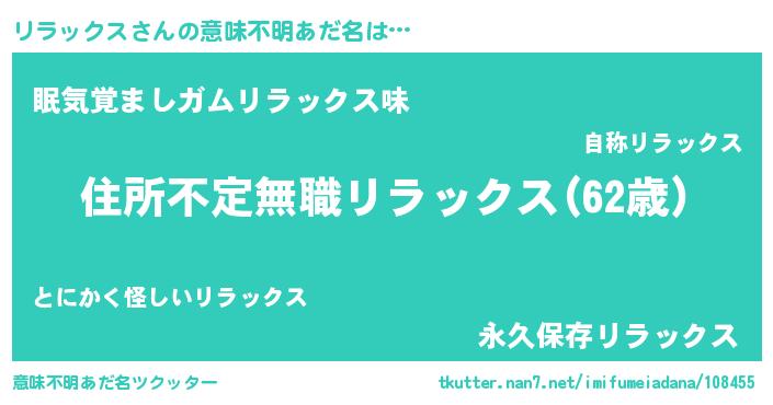 | ヒーロー風カッコイイあだ名 | 『仮面リラダー』『天空の使者リラックス』 |