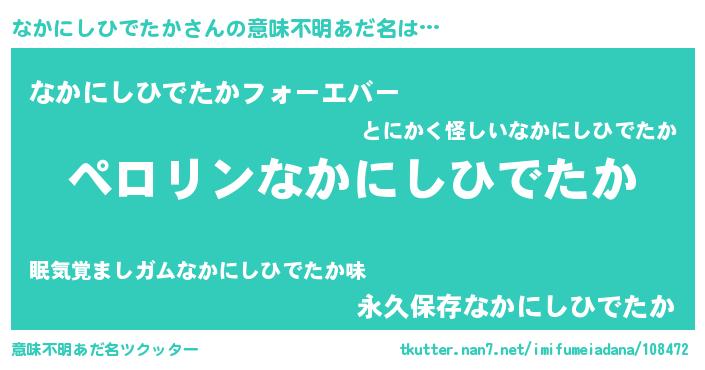 | 女子向けラノベタイトル風あだ名 | 『(仮)なかにしひでたかのやんごとなき事情』 |