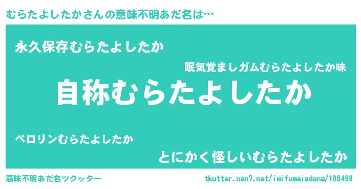 | ヘコむあだ名 | 『むらたよしたか(笑)』『むらっ子』 |