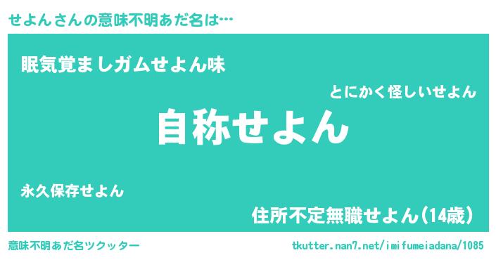 | 男性向けラノベタイトル風あだ名 | 『Re:せよんから始める異世界生活』 |