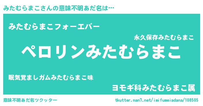 | 男性向けラノベタイトル風あだ名 | 『うちのみたむらまこが世界を掌握している!』 |