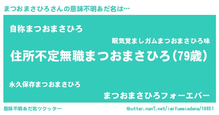 | 男性向けラノベタイトル風あだ名 | 『この素晴らしい世界にまつおまさひろを!』 |