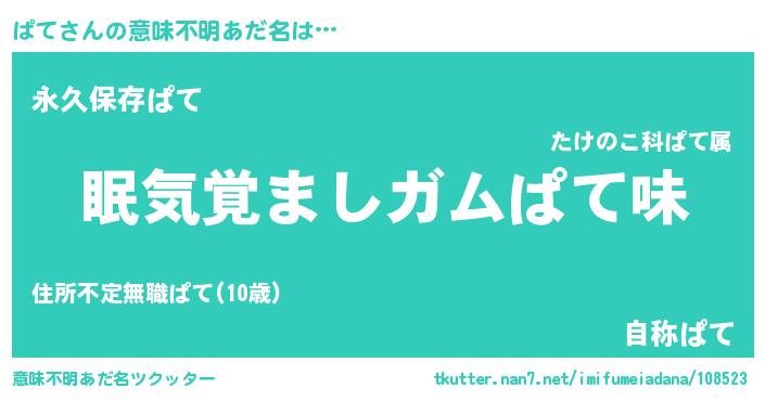 | ヒーロー風カッコイイあだ名 | 『天空の使者ぱて』『ネオパテ』 |