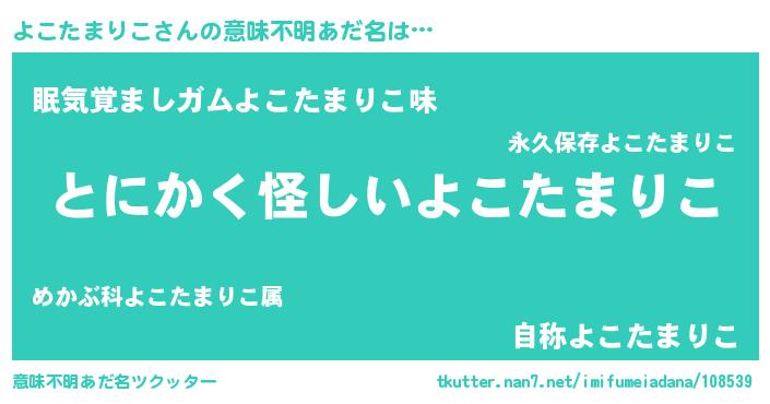 | 女子向けラノベタイトル風あだ名 | 『よこたまりこは平凡を望む』 |