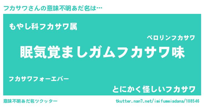 | 男性向けラノベタイトル風あだ名 | 『ノーゲーム・ノーフカサワ』 |