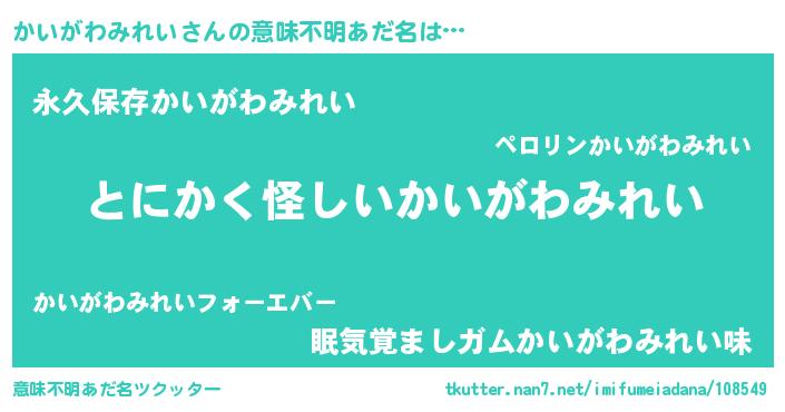 | ヘコむあだ名 | 『かいっ子』『かいがわみれい(笑)』 |