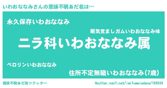 | 男性向けラノベタイトル風あだ名 | 『いわおななみ~年齢イコール彼女いない歴の魔法使い~』 |