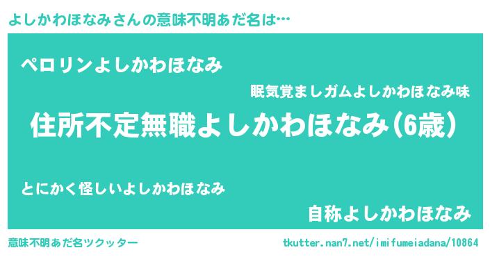 | 男性向けラノベタイトル風あだ名 | 『魔弾の王とよしかわほなみ』 |