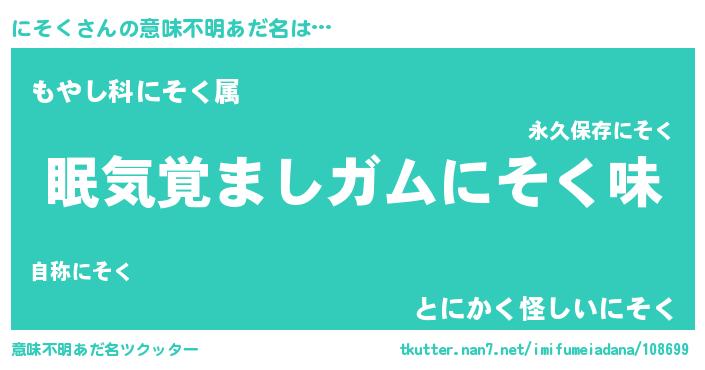 | ヘコむあだ名 | 『にそ太郎』『にそく(笑)』 |