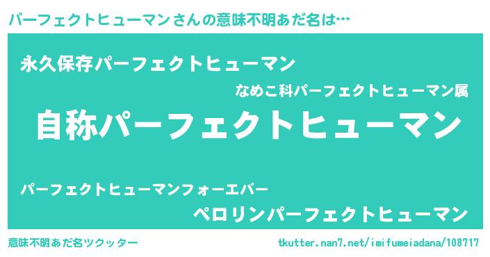 | 男性向けラノベタイトル風あだ名 | 『Re:パーフェクトヒューマンから始める異世界生活』 |