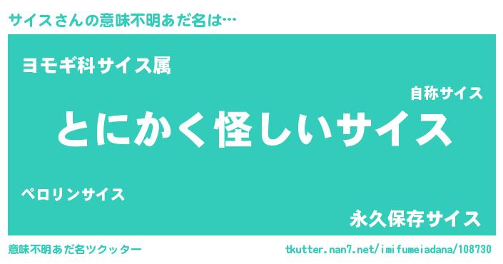 | 男性向けラノベタイトル風あだ名 | 『サイスの嫁は女の子じゃないと思った?』 |