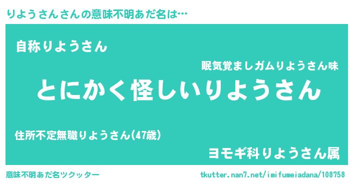 | 男性向けラノベタイトル風あだ名 | 『りようさんの嫁は女の子じゃないと思った?』 |
