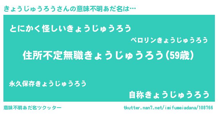 | ポケモン風あだ名 | 『キーョイ』『ヒキョウジュウロウ』 |