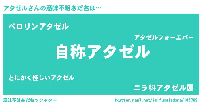 | 女子向けラノベタイトル風あだ名 | 『アタゼルなんてお断りですっ。』 |