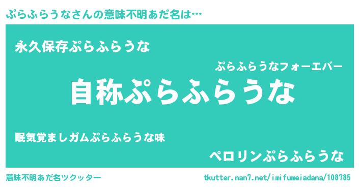 | ヘコむあだ名 | 『ぷらふらうな(遠い目)』『ぷらもー』 |