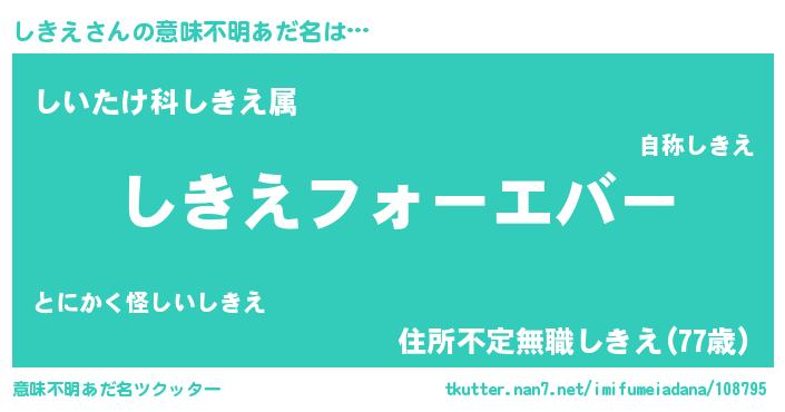| 男性向けラノベタイトル風あだ名 | 『やはりしきえの青春ラブコメはまちがっている 』 |