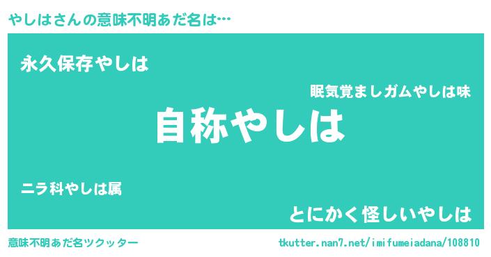 | ヘコむあだ名 | 『やしは(苦笑)』『やしっぺ』 |