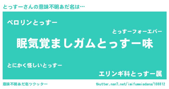 | ヘコむあだ名 | 『とっにゅー』『なまこ酢』『とっお』 |