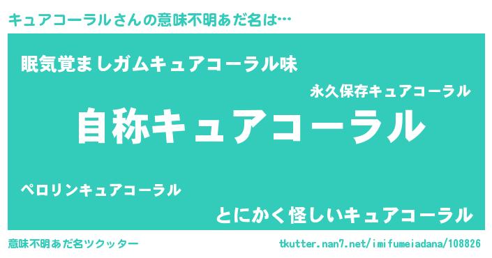 | 男性向けラノベタイトル風あだ名 | 『Re:キュアコーラルから始める異世界生活』 |