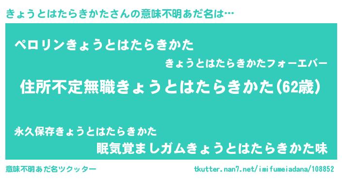 | 男性向けラノベタイトル風あだ名 | 『この素晴らしい世界にきょうとはたらきかたを!』 |