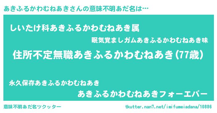 | 料理風あだ名 | 『あきふるかわむねあきのカルパッチョ風』 |