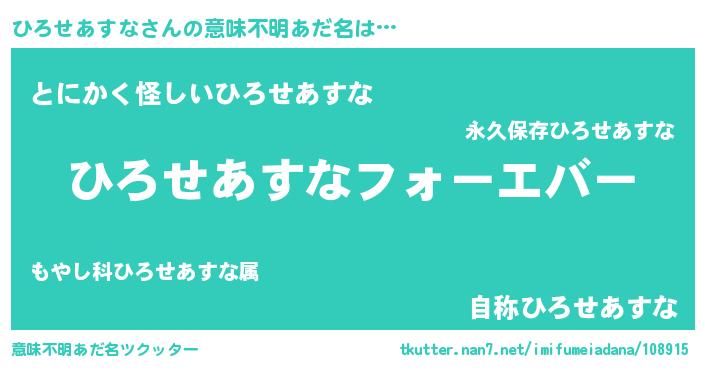 | 胡散臭い通販商品みたいなあだ名 | 『運命の人と巡り会える高級そうな壺…その名も「ひろせあすな」』 |