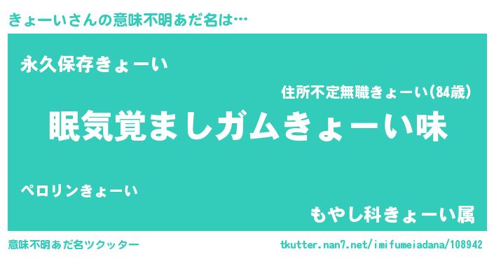 | ヘコむあだ名 | 『きょーい(震え声)』『きょにゅー』 |