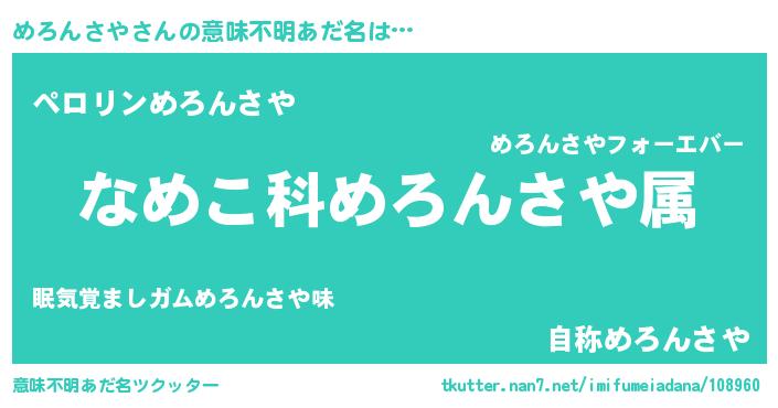 | ヘコむあだ名 | 『めろもー』『つくし』『めろっぺ』 |