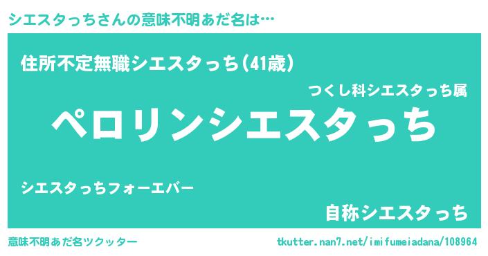 | 男性向けラノベタイトル風あだ名 | 『シエスタッチアートオンライン』 |