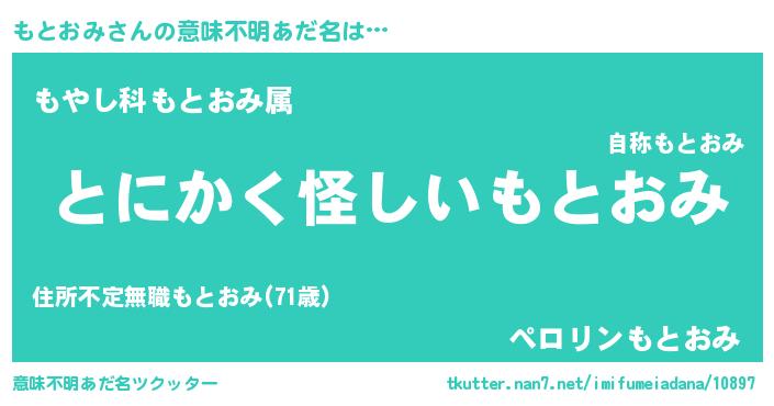 | 男性向けラノベタイトル風あだ名 | 『もとおみの嫁は女の子じゃないと思った?』 |
