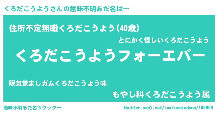 | 男性向けラノベタイトル風あだ名 | 『冴えないくろだこうようの育てかた』 |